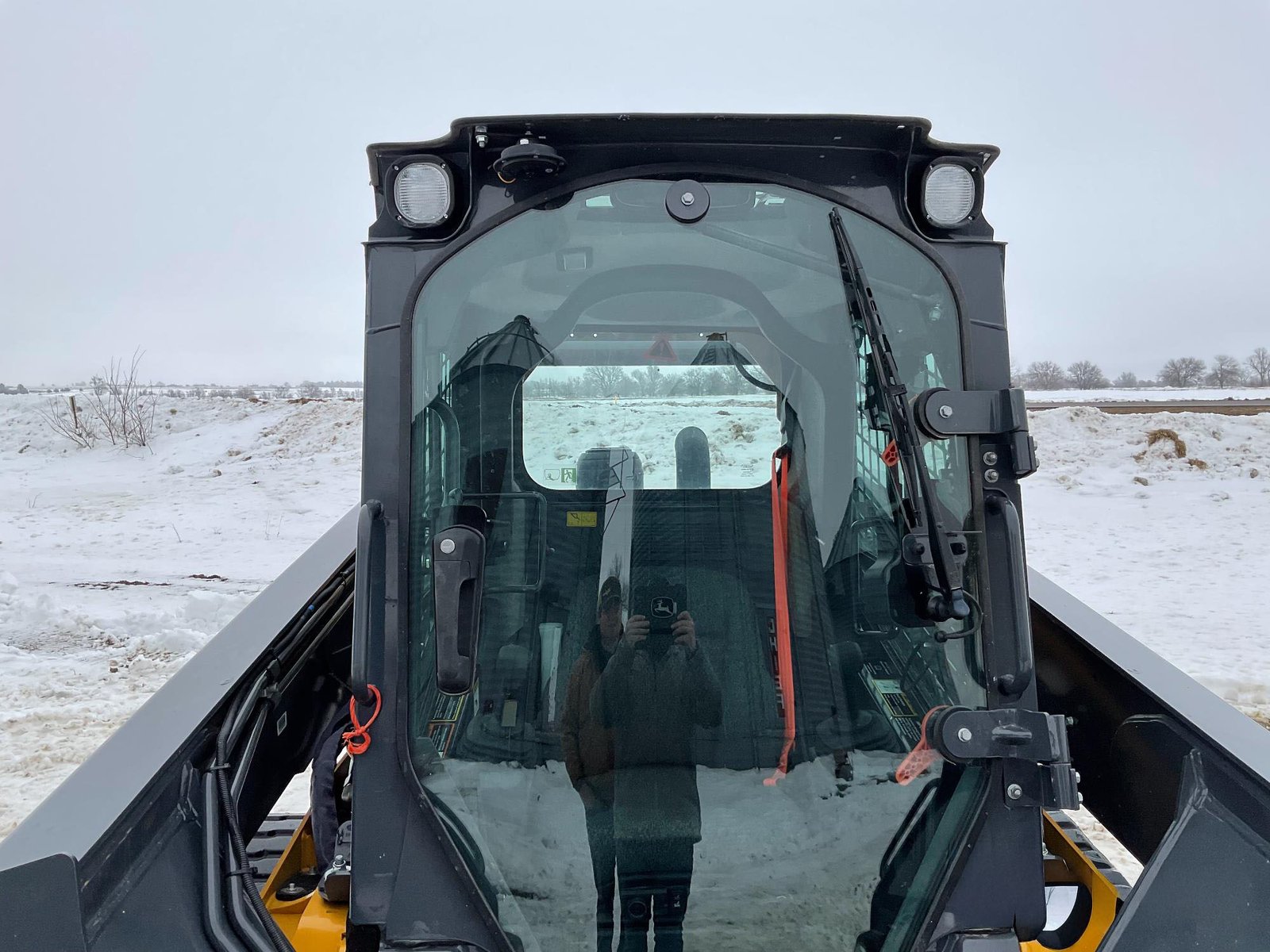 Cab Features: Air-ride heated cloth seat, ISO switchable joystick controls, and foot throttle.